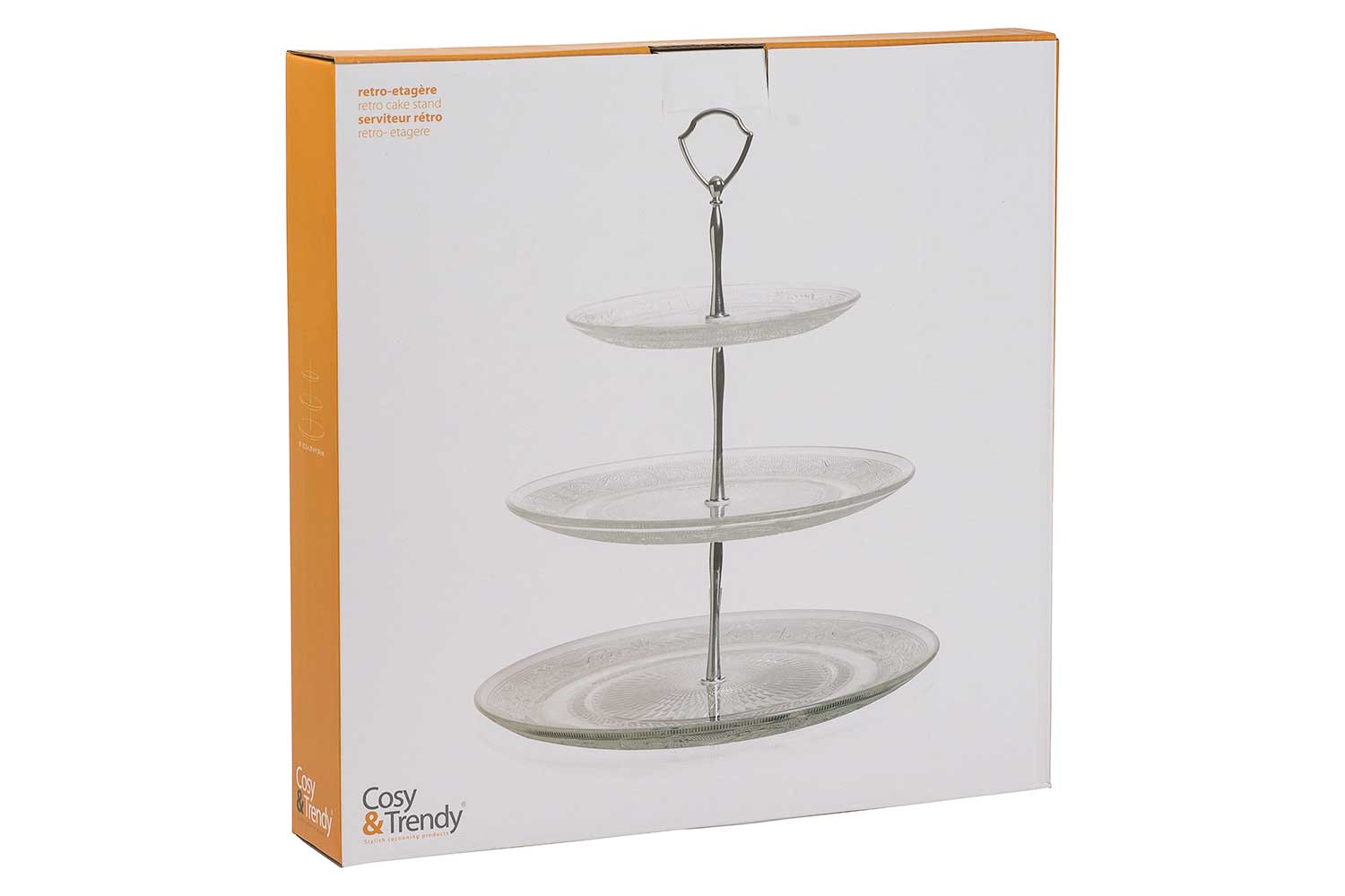 Wil je eens verrassend uit de hoek komen met de presentatie van jouw pralines, koeken en gebak? Dan is deze unieke glazen etagére zeker iets voor jou! De etagére heeft een uitgesproken vintage look dankzij de sierlijke motieven aan de onderkant van de glazen plateaus. Bovendien is de etagére voorzien van een ring zodat hij ook erg gemakkelijk en veilig te verplaatsen is. Hoog tijd voor wat heerlijke ouderwetse lekkernijen!